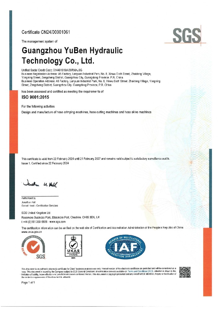 Guangzhou Yuben Hydraulic Technology Co., Ltd. was established in 2012 with a registered capital of 2 million yuan. It is a high-tech enterprise integrating R&D, production and sales. Currently, we have developed and produced more than 50 models of hydraulic hose assemblies.